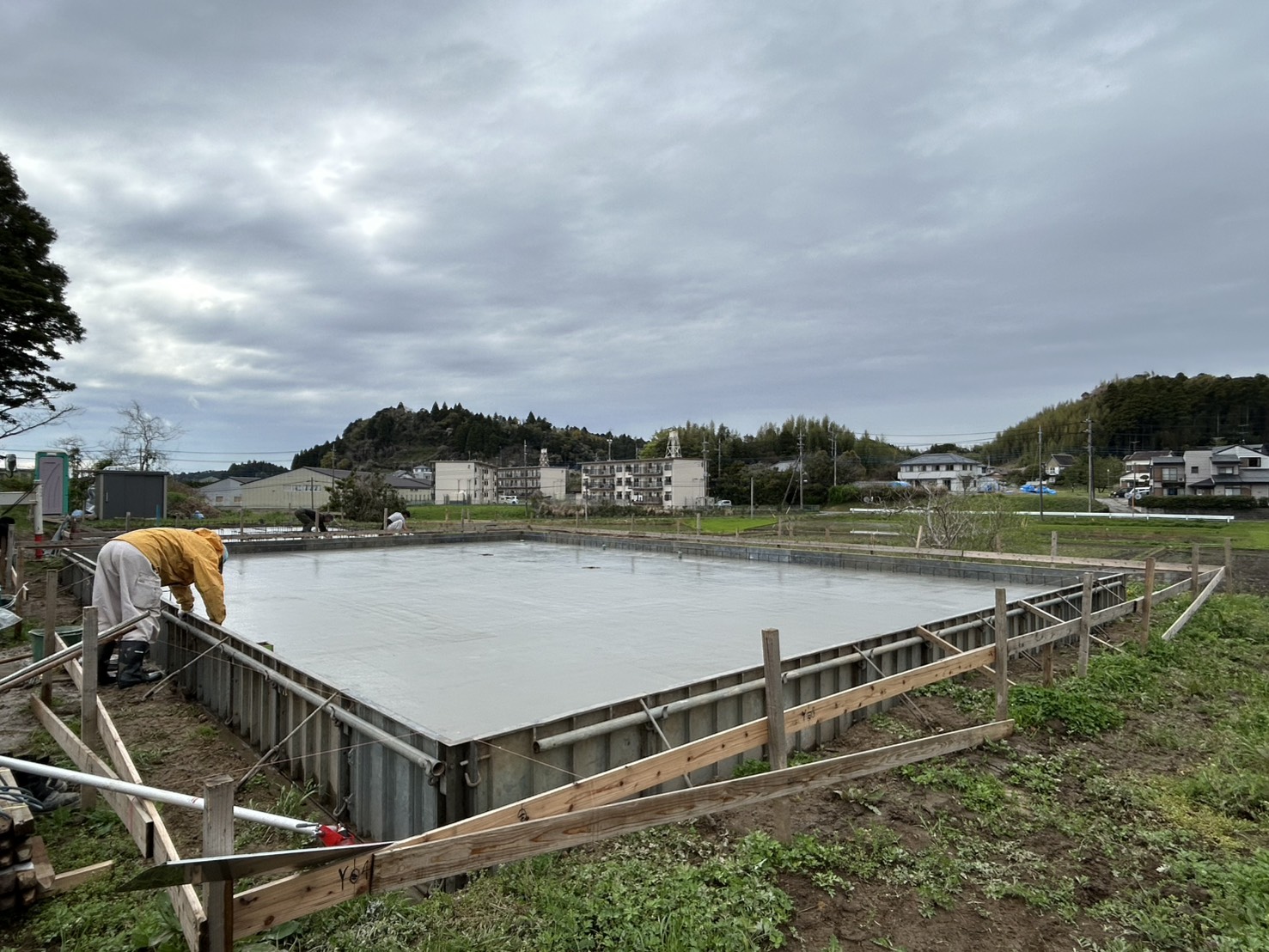 流し込みから均しまで、職人たちの連携が光ります😎✨