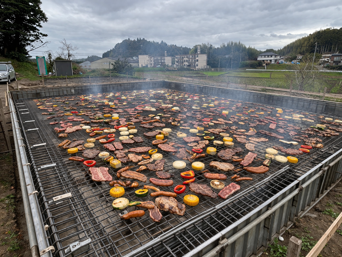 ジュージュー焼ける音と香りに包まれ、現場の空気は完全にお昼モードへ😂✨